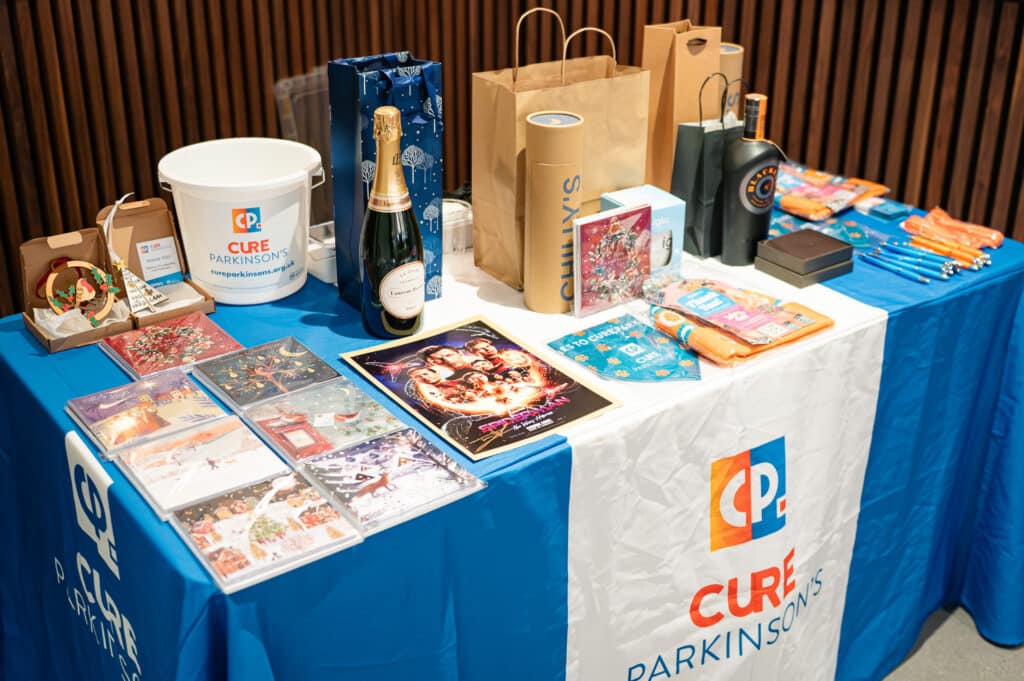 Guests were also invited to enter our raffle, with prizes including: a poster of Spiderman signed by Tom Holland, a luxury wallet and a bottle of Mike Tindall’s gin and a bag of Cure Parkinson’s goodies, including a Chilly’s water bottle, an OddBalls bobble hat, a dog bandana and a Christmas bauble!